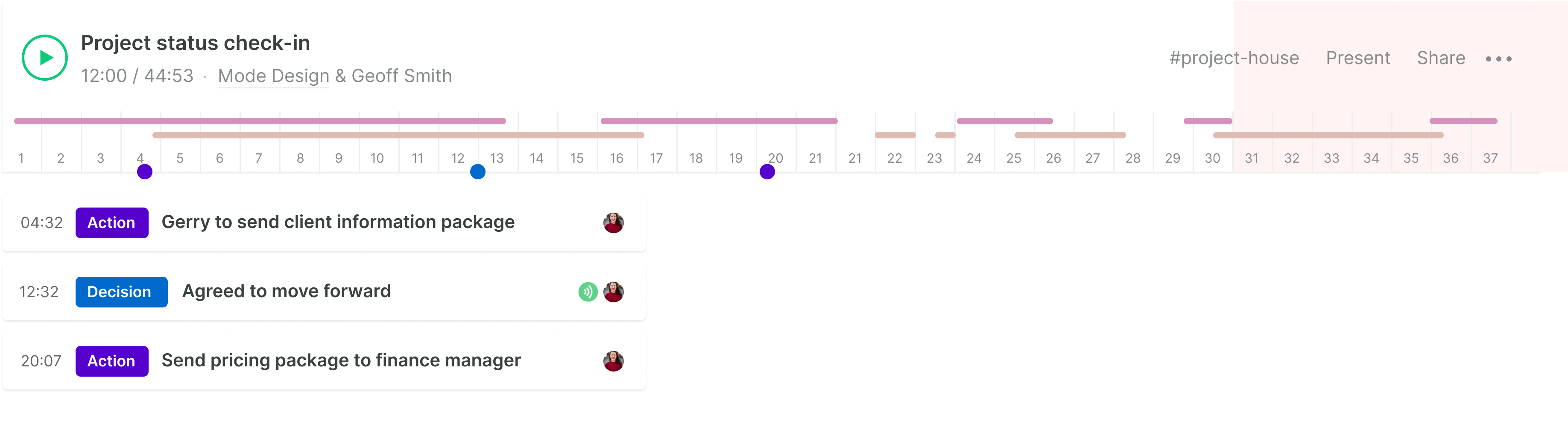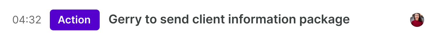 Without a record of your important decisions and action items, your team and your client can leave the meeting with different expectations and misalignment on next steps, causing confusion and disputes.